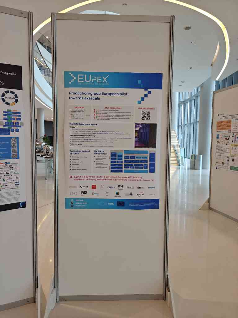 The project further increased its visibility by participating in the poster session — and the EUPEX poster was hard to miss! Positioned right at the bottom of the stairs upon entering the first floor, it immediately caught attendees’ attention.